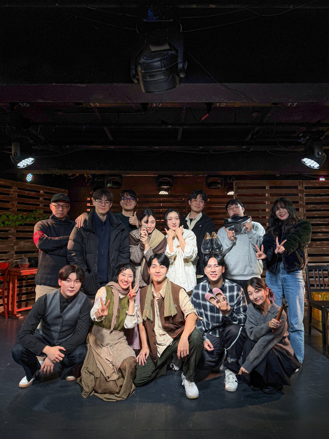 연극 ‘사람은 무엇으로 사는가’ 배우들이 공연을 마치고 기념촬영을 하고 있다.(사진=창세프로덕션)