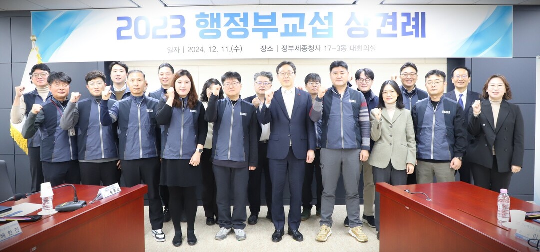 <12월 11일 오전 세종시 정부세종청사에서 열린 2023 행정부교섭 본교섭위원 상견례를 마친 노정 양측 교섭위원들이 기념촬영에 임하고 있다.>