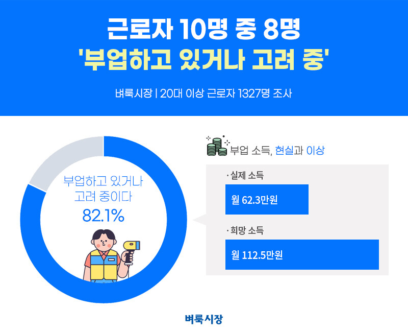 부업 희망 소득 월 112.5만원, 실제 부업 소득 월 62.3만원...약 2배 차이