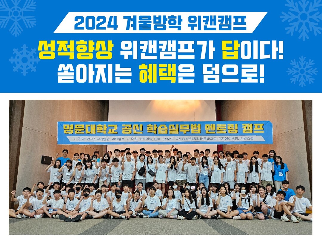 겨울방학 위캔캠프, 전 기수 마감 임박…서울대 공신 1:1 맞춤 멘토링 제공