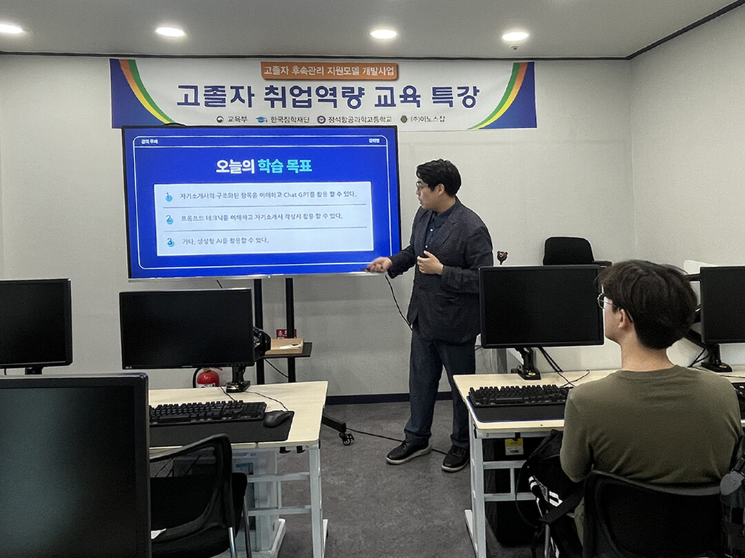 [피앤피뉴스=마성배 기자] 주식회사 이노스잡은 교육부, 한국장학재단, 정석항공과학고등학교와 협력해 취업을 희망하는 고졸자들의 취업역량을 강화하기 위해 고졸자 취업역량 교육 특강을 개최했다.