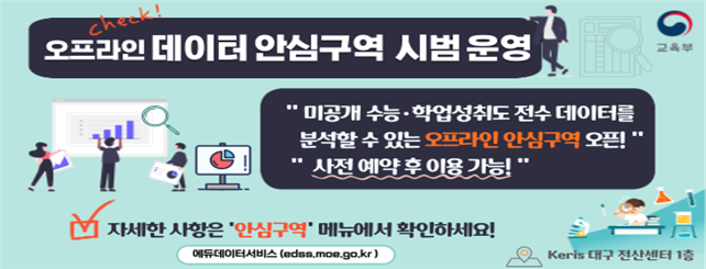 한국교육학술정보원(KERIS)은 2025년 2월부터 수능, 학업성취도 평가 등 연구 수요가 높은 민감 데이터를 보호하면서도 분석이 가능하도록 ‘교육데이터 안심구역’을 개소했다고 밝혔다.