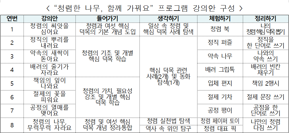 국민권익위는 이번 프로그램을 통해 미래 세대가 청렴 문화를 체득할 수 있도록 지원하겠다는 방침이다.