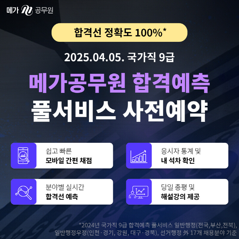 메가공무원, ‘2025 국가직 9급공무원 시험 합격예측 풀서비스’ 사전예약 오픈