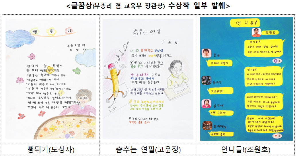 최은옥 교육부 차관은 “문해교육을 통해 새로운 세상을 경험하게 되었다는 학습자들의 이야기를 들으며 배움의 가치와 중요성을 다시금 깨닫게 된다”며, “앞으로도 원하는 사람 누구나, 언제라도 배우며 성장할 수 있는 학습 환경을 만들겠다”고 말했다.