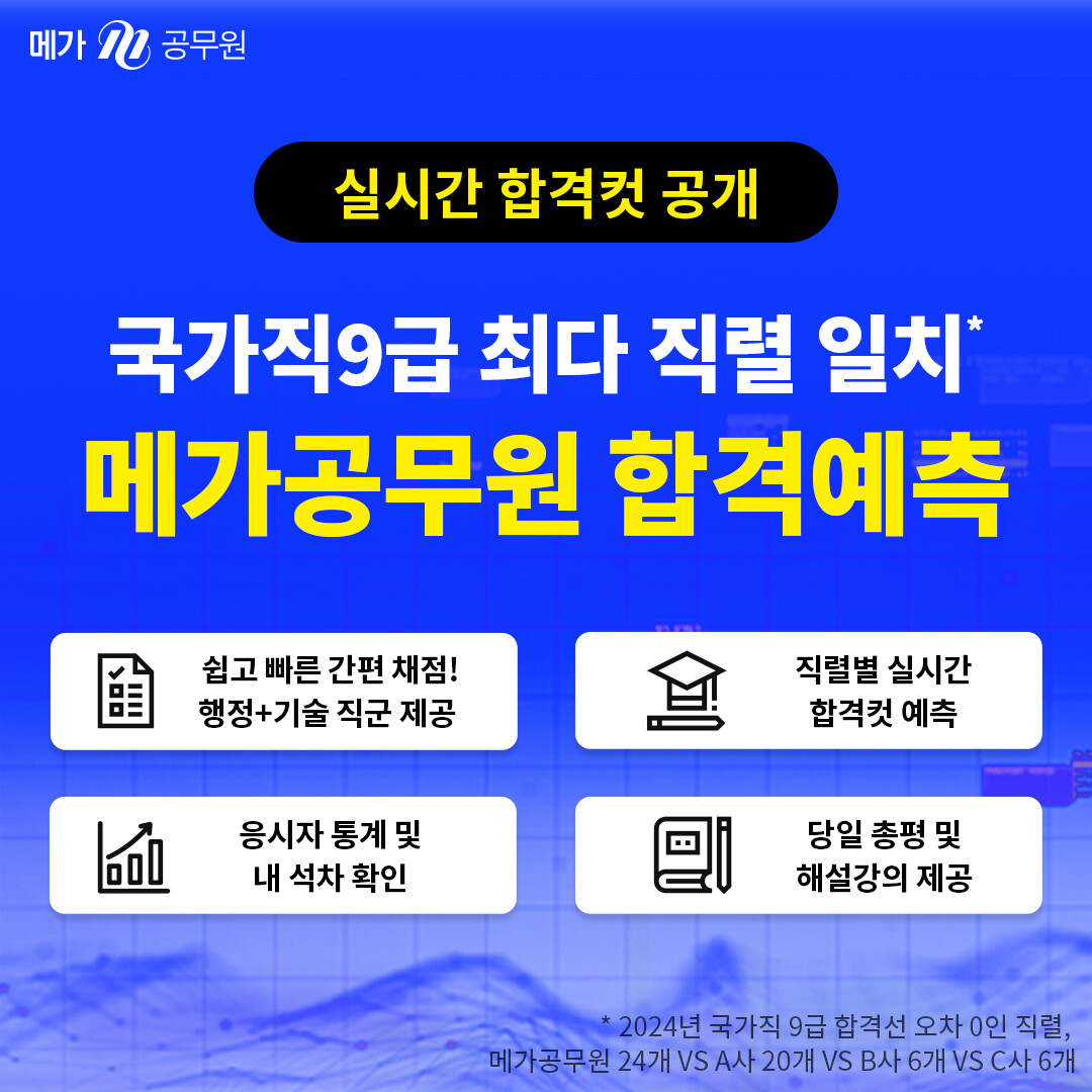메가공무원, 4/5(토) 국가직 9급 시험 풀서비스 진행 "첫 예측컷부터 확인"