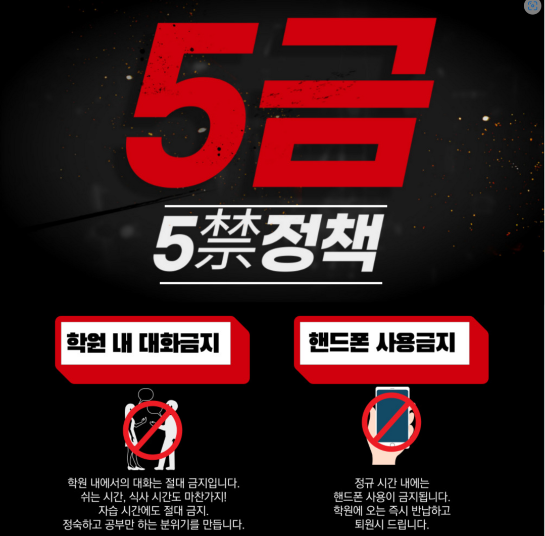 강남 대치동 멘토스학원은 관리가 잘되는 소수정예 재수학원 원조이다. 5금정책으로 학원 내 대화금지. 핸드폰금지, 금연, 연애금지, 결석 조퇴금지를 슬로건으로 하고 있다. 한반 정원은 10명 내외 소수정예로 진행하고 멘토스학원은 2시간 수업에 1시간 1:1 셀토클리닉으로 진행한다. 방금 수업 한 선생님께 질문하는 일본 입시에서 성공한 시스템을 최유신 원장님이 도입한 시스템이다.