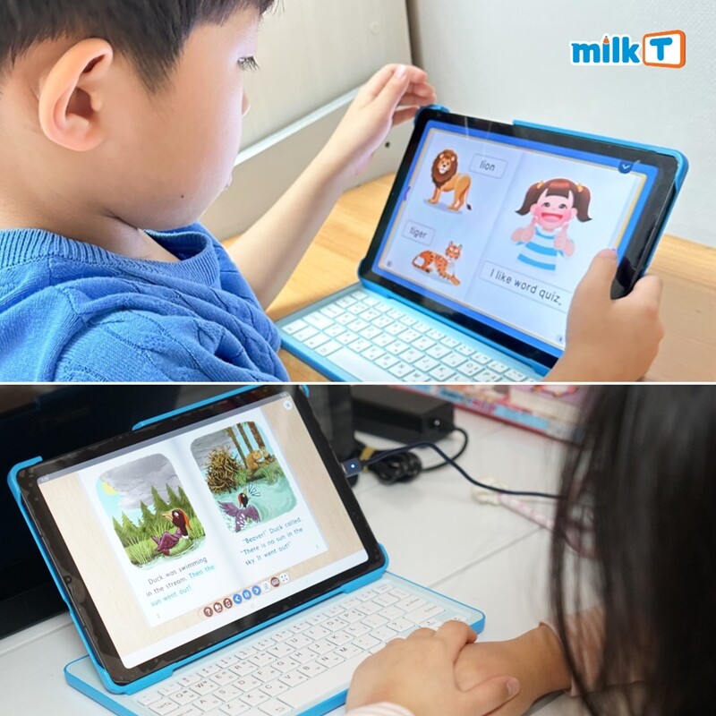 천재교육 관계사 천재교과서가 만든 초등 1위 밀크T초등(2024 한국갤럽 디지털학습 소비자 조사 기준, 브랜드 점유율 1위)은 파닉스부터 리스닝, 스피킹, 리딩은 물론 영어 원서까지. 영어 전 영역을 쉽고 재미있게 배울 수 있는 다채로운 콘텐츠를 제공하며 초등학생의 영어 홈스쿨링을 지원하고 있다.