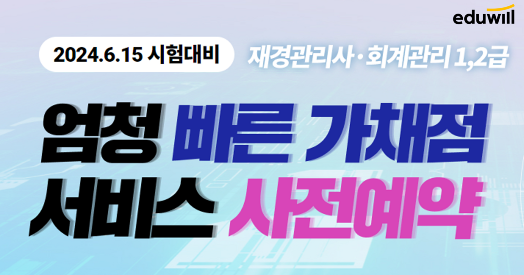 [피앤피뉴스=마성배 기자] 종합교육기업 에듀윌(대표 양형남)이 오는 15일 시행되는 재경관리사 및 회계관리 1·2급 시험에 대한 가채점 서비스를 실시한다고 14일 밝혔다.