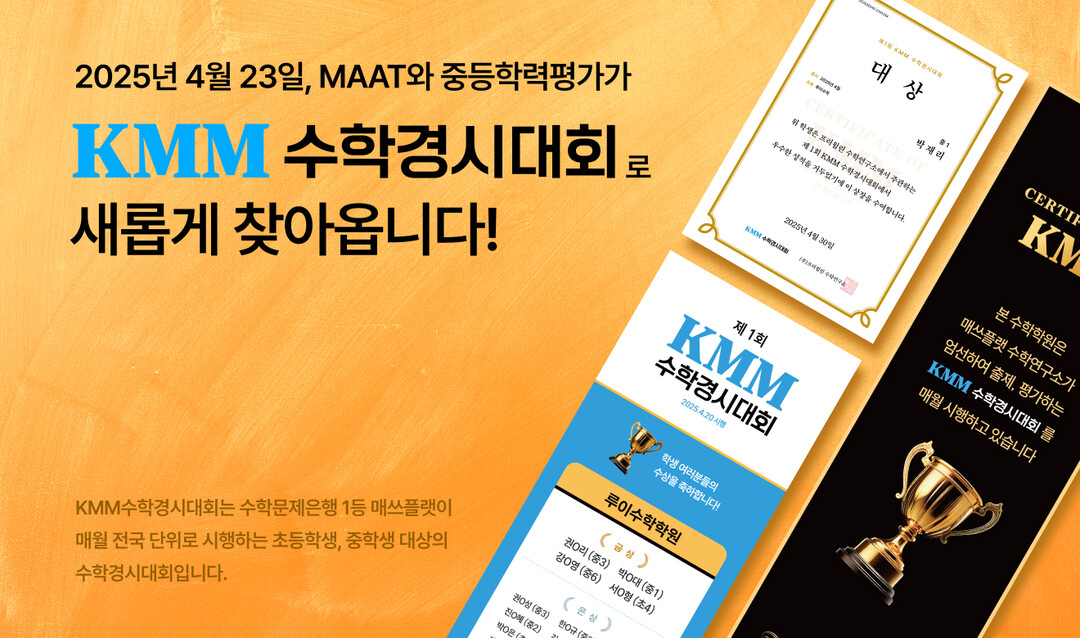 KMM 수학경시대회는 오는 4월 23일 첫 시험을 시작으로, 매월 넷째 주 수요일부터 일요일까지 5일간 정기적으로 시행된다. 기존의 초등 대상 ‘MAAT 수학경시대회’와 중등 대상 ‘매쓰플랫 학력평가’를 통합해, 모든 학년에 걸쳐 학생 개개인의 학업 성장을 점검할 수 있는 전국 단위 시험으로 기획됐다.