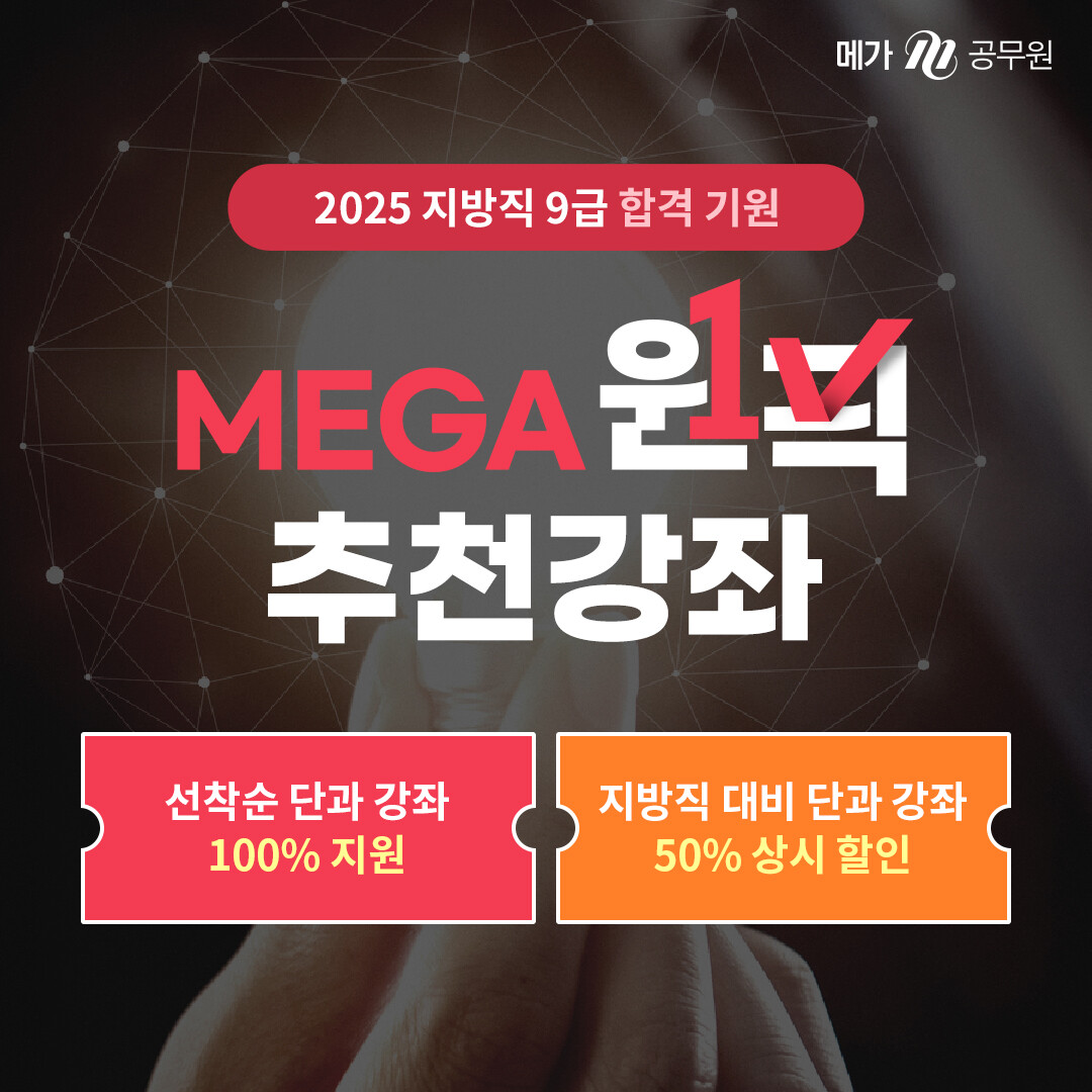 메가공무원, 2025 지방직 9급 대비 단과 강좌 할인 프로모션 진행… 선착순 100% 지원