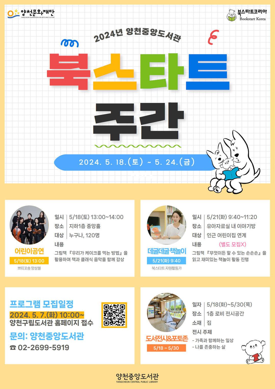 [피앤피뉴스=마성배 기자] 양천구립도서관이 2024년 북스타트 주간을 맞아 오는 5월 18일부터 24일까지 다양한 행사를 선보인다.