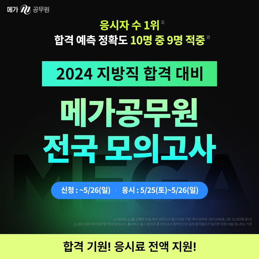 메가공무원, 2024 9급 지방직공무원 합격 대비 전국 모의고사 무료 시행