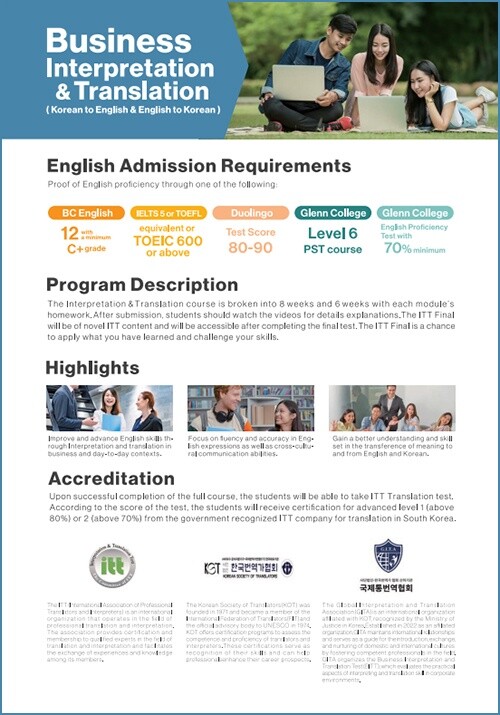 온라인테솔과 통번역자격증은 캐나다 PTIB의 엄격한 기준을 충족한 디플로마 과정으로, 다른 certificate 수료증과는 공신력에서 차이가 많은 과정이다.