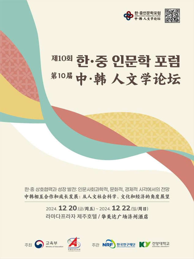 [피앤피뉴스=마성배 기자] 교육부와 한국연구재단은 중국사회과학원과 함께 12월 20일부터 21일까지 제주에서 ‘제10회 한·중인문학포럼’을 개최한다. 양국 간 인문·사회적 유대 강화를 위한 행사로, 올해 10주년을 맞아 더욱 다양한 논의가 펼쳐질 예정이다.