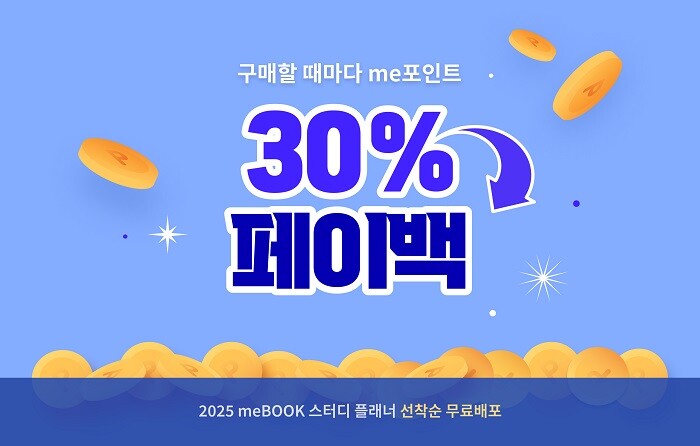 우선 ‘30% 페이백 이벤트’를 통해 미북스토어에서 기간한정 대여 전자책 구매 시 결제금액의 30%를 me포인트를 적립해 준다. 미북스토어의 기본 적립 포인트는 구매금액의 3%지만, 이번 이벤트 기간 동안은 10배에 해당하는 30%를 적립해주는 것이다. me포인트는 미북스토어에서 전자책 교재를 구입할 때 현금처럼 사용할 수 있다.