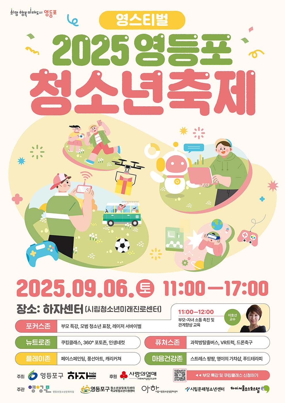 [피앤피뉴스=마성배 기자] 시립청소년미래진로센터(센터장 황윤옥, 이하 하자센터)와 영등포구가 오는 9월 6일(토) 서울시 영등포구 영신로 하자센터에서 2025 영등포 청소년축제 ‘영스티벌’을 개최한다. 축제는 오전 11시부터 오후 5시까지 진행된다.