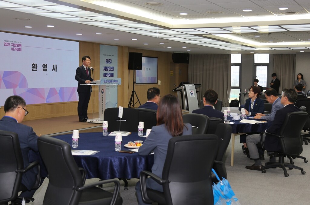 <류임철 행정안전부 지방자치인재개발원장이 지난해 9월 26일 전북 완주군 소재 지방자치인재개발원에서 열린 2023년 제4기 지방의회 아카데미에 참석해 환영사를 하고 있다. 사진=행정안전부>
