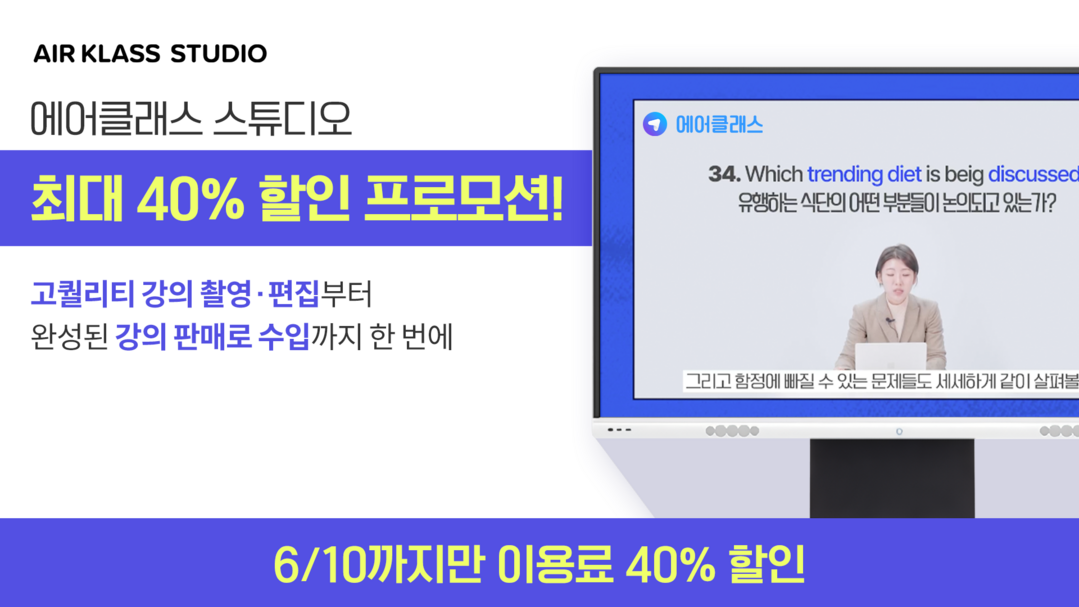 온라인 클래스 플랫폼 에어클래스가 스튜디오 촬영권 최대 40% 할인 프로모션을 진행한다고 10일 밝혔다.