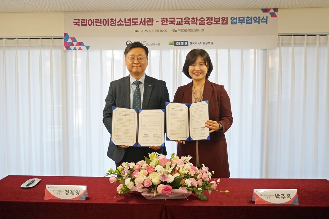 [피앤피뉴스=마성배 기자] 한국교육학술정보원(케리스)과 국립어린이청소년도서관(국어청)이 4일 어린이·청소년의 디지털 교육문화 혁신을 위한 협력체계를 구축하고 정보 공유와 첨단 콘텐츠 개발에 본격 나섰다.