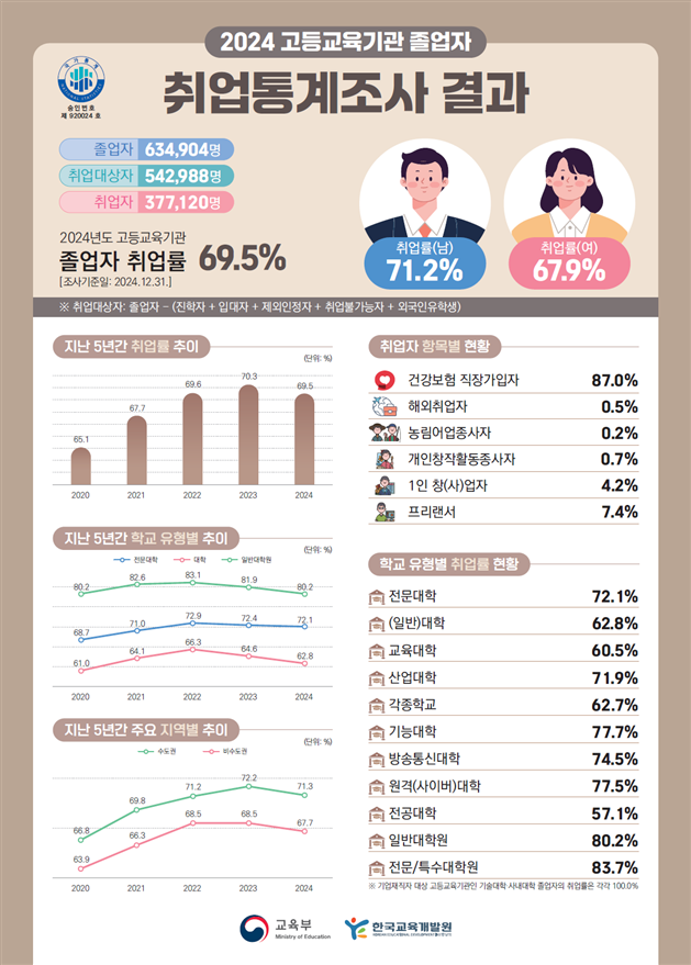 | ▲2024년도 고등교육기관 졸업자 취업통계조사 인포그래픽(교육부·국가데이터처·한국교육개발원 제공) |