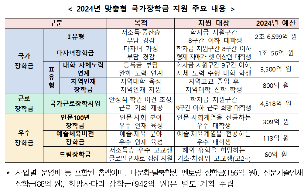 교육부는 이러한 내용을 담은 ‘2024학년도 맞춤형 국가장학금 지원 기본계획을 지난 31일 발표했다.