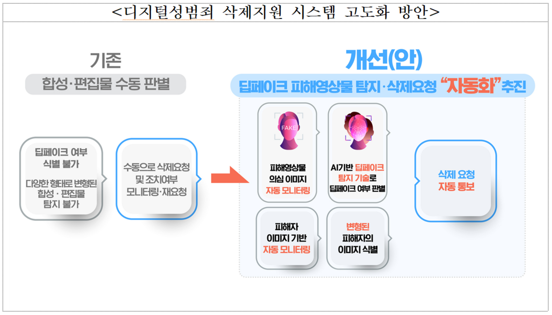 한편, 여가부와 과기정통부는 7월부터 ‘딥페이크 기반 디지털 성범죄 예방 및 피해자 보호 방안 마련’을 위한 정책연구를 공동 추진해오고 있다.