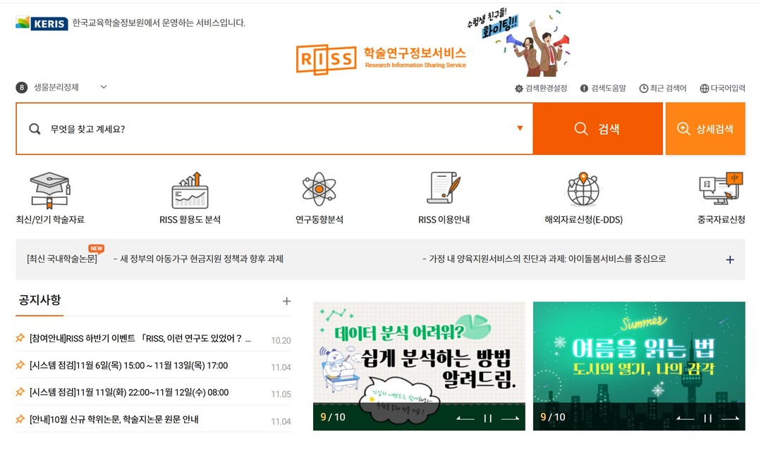 | ▲학술연구정보서비스(RISS) 메인 페이지 |