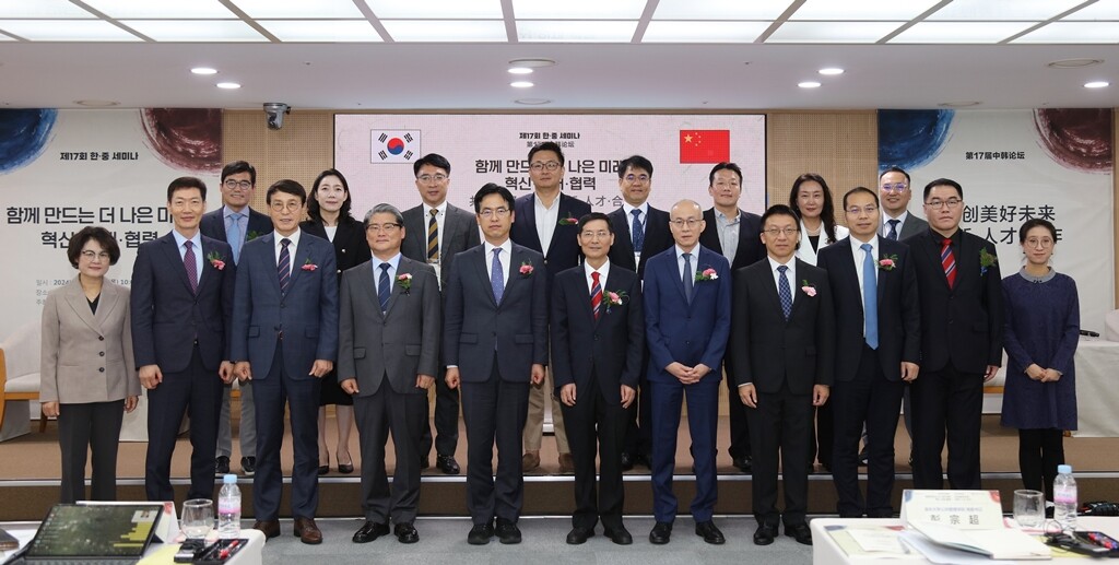 <10월 17일 오전 전북 완주군 소재 행정안전부 지방자치인재개발원에서 열린 제17회 한·중 세미나 개회식에 김민재 차관보(앞줄 왼쪽에서 다섯번째)와 임상규 지방자치인재개발원원장이 양국 발표자 및 토론자들과 함께 기념 촬영을 하고 있다. 사진=행정안전부>