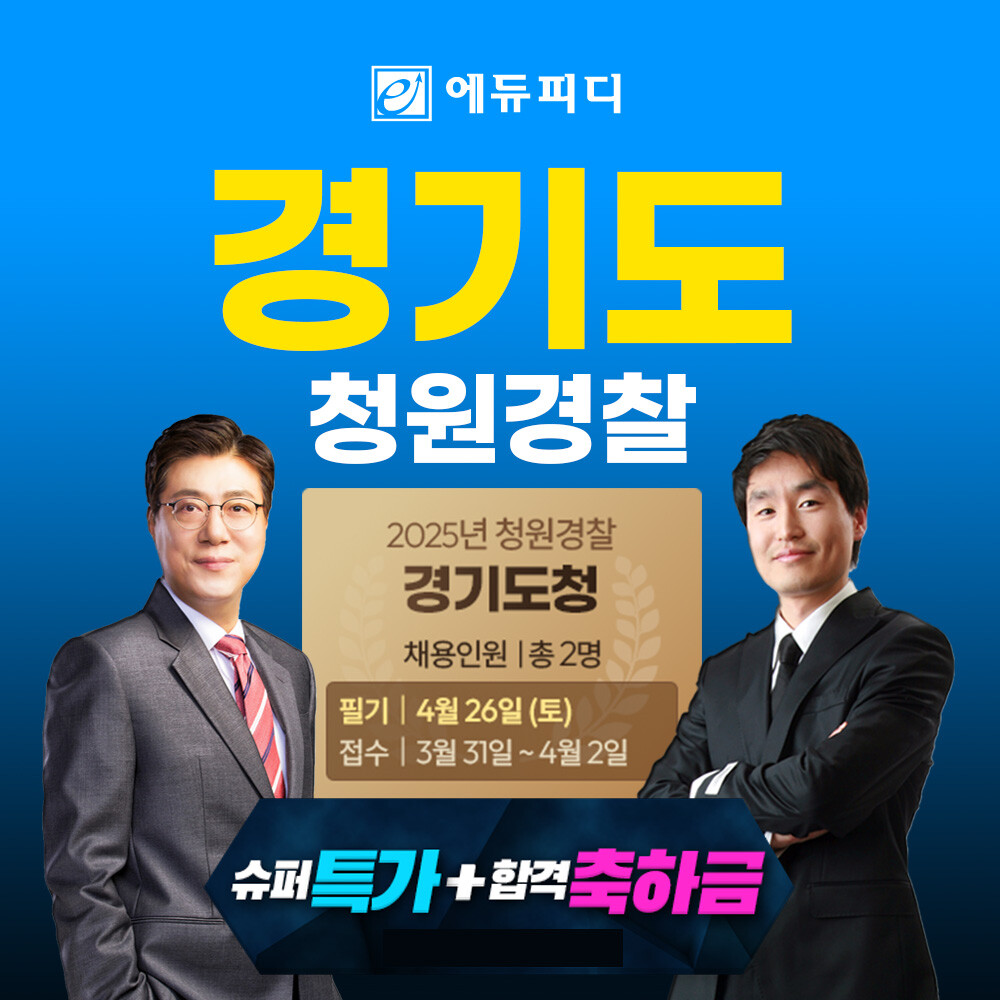 에듀피디 관계자는 “경기도의회가 청원경찰 처우 개선 방안으로 2025년 3월부터 특수업무수당 8만원을 지급키로 결정함에 따라 이번 경기도 청원경찰 채용시험 응시인원은 작년보다 증가할 것으로 예상된다”며 “전국 지자체 및 공공기관 청원경찰을 배출하여 온 에듀피디 인강 커리큘럼을 통해 올해에도 수강생들의 합격을 기원하며 슈퍼특가 할인 이벤트를 진행하게 되었다”고 설명했다.