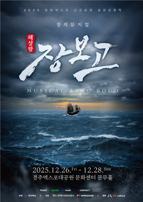 2025 문화엑스포 신규 제작공모 선정작 뮤지컬 <해상왕 장보고>가 오는 12월 26일부터 28일까지 총 4회, 경주엑스포대공원 문화센터 문무홀에서 관객과 만난다. 본 작품은 신라의 수도 경주를 출발점으로 동아시아 해양 실크로드의 장대한 여정을 무대에 재현해, 2025 APEC 성공 개최로 글로벌 도시로 도약한 경주의 정체성을 새롭게 조명한다.