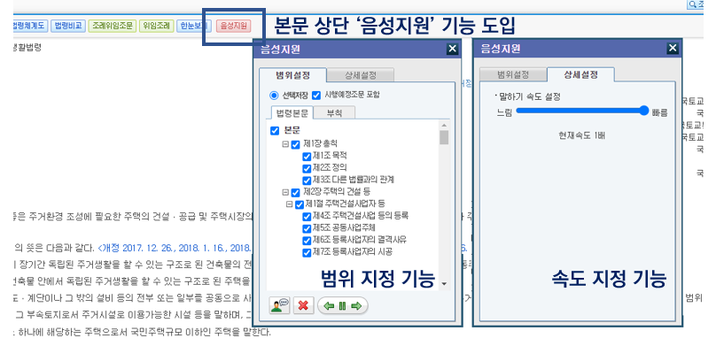 법령 음성 지원 PC 확대 및 지방자치단체 조례와 규칙 연계 기능 등