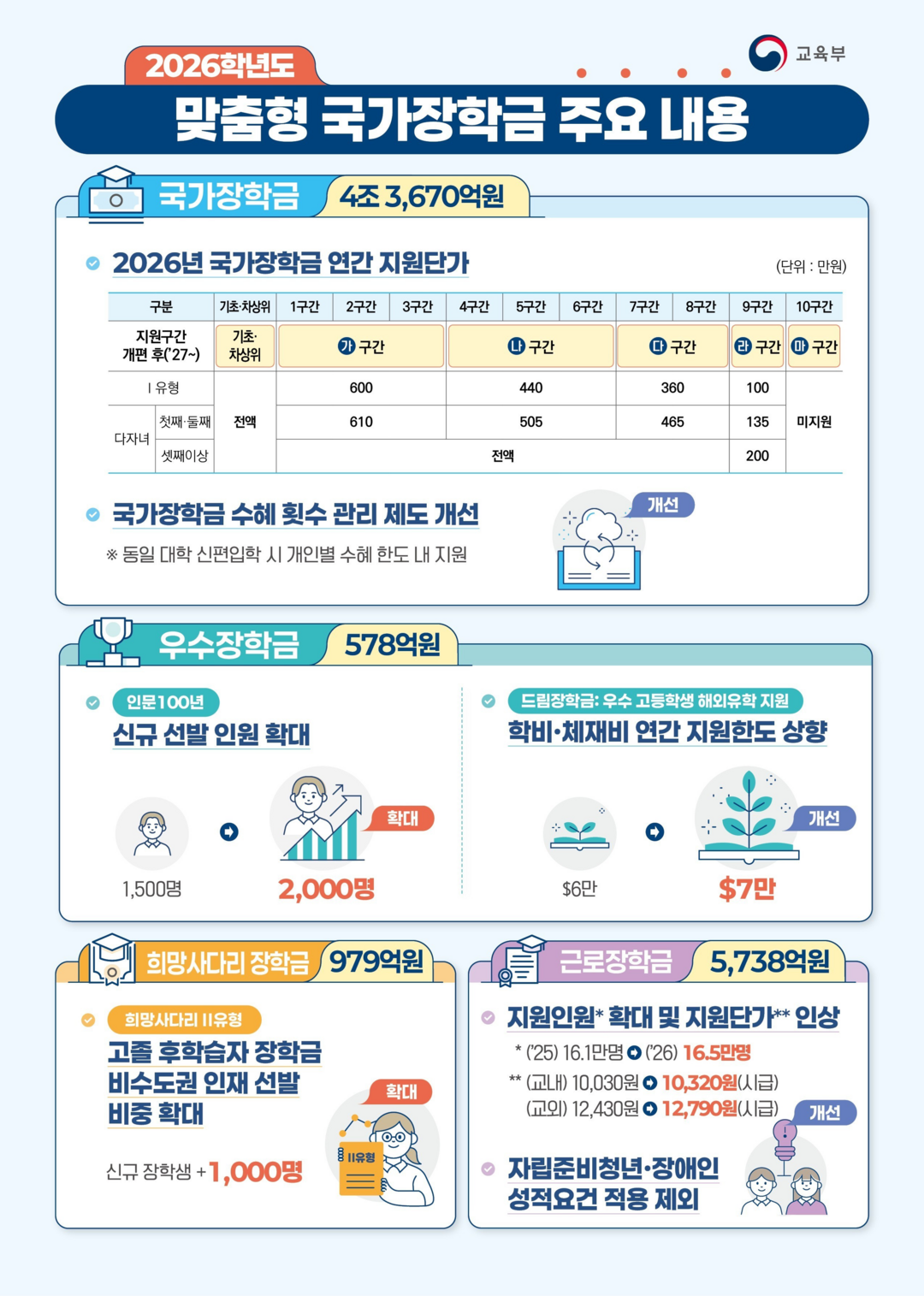 올해 국가장학금 5조1161억 원 투입…2026년 맞춤형 장학금 기본계획 확정