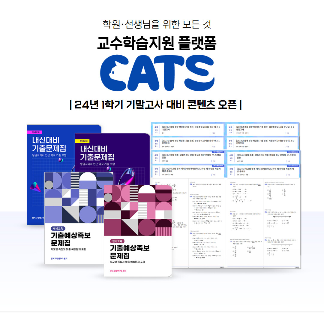 한편, 캐츠의 24년 1학기 기말고사 대비 콘텐츠는 학원/선생님이라면 누구나 무료로 활용할 수 있으며, 캐츠 홈페이지를 통해 더욱 많은 소식과 정보를 확인할 수 있다.