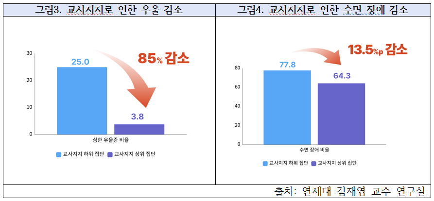 교사 정서적 지지 높을수록 우울 증상 85% 감소, 수면 문제도 완화