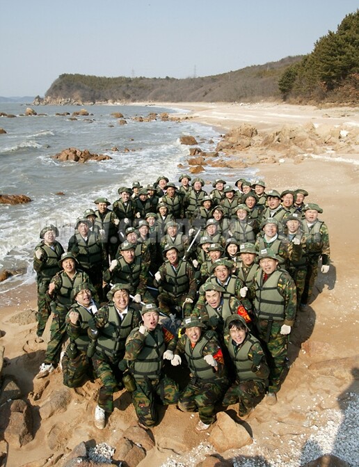 기업체 신입사원들이 직원교육과정의 일환으로 극기캠프에 참가해 화이팅을 외치고 있다.(사진 제공: 교육그룹 더필드)