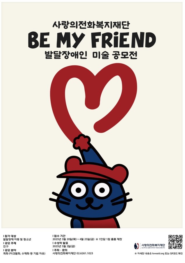 발달장애를 지닌 아동과 청소년이 그림을 통해 자신의 이야기를 펼치고, 그 작품이 국경을 넘어 전 세계와 소통하는 특별한 공모전이 열린다. 사랑의전화복지재단(이사장 심정은)은 발달장애 청소년의 예술적 잠재력을 알리고 사회적 공감대를 확산하기 위한 ‘Be My Friend’ 미술 공모전을 개최한다고 24일 밝혔다.