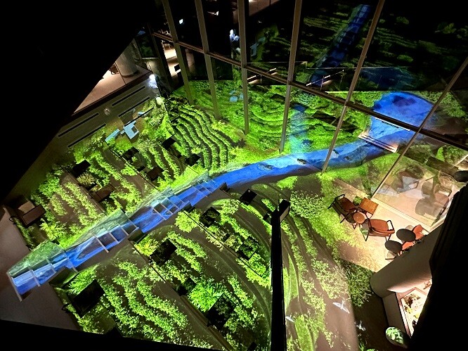 △Microclimate : 현존하는 삶의 결 기획·제작을 도맡은 HWAN 아트디렉터는 본 작품을 통해 자연 환경 속 담긴 미세 기후들이 커피 재배지에 주는 영향을 표현하며 한잔의 커피가 만들어지기까지의 다양한 과정과 요소들을 담아낸다. 이번 작품의 포인트인 계단을 따라 흐르는 폭포는 관람객에게 자연의 청량감을 선사한다.