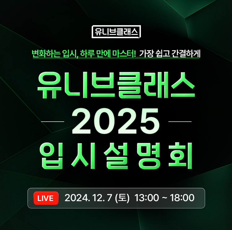 [피앤피뉴스=마성배 기자] 학부모와 학생을 위한 입시 솔루션을 제공하는 유니브클래스가 오는 12월 7일 오후 1시, 온라인 입시설명회를 라이브로 개최한다. 이번 2025년 유니브클래스 입시설명회는 "고등학교 3년 동안 필수로 하게 되는 입시 고민에 대한 모든 해결책"을 제시하는 것을 목표로 하여, 학부모와 학생들의 많은 관심을 받고 있다.