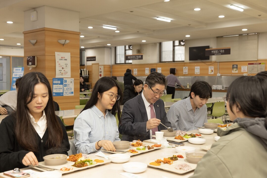 [피앤피뉴스=마성배 기자] 고려대학교 김동원 총장은 5일 오전에 학생회관 식당을 찾아 학생들과 ‘천원의 아침’ 식사를 함께했다. 고려대는 올해부터 기존의 학생 식당 두 곳 이외에 기숙사 구내식당까지 장소를 확대해 많은 학생이 천 원으로 아침 식사를 해결할 수 있게 했다.