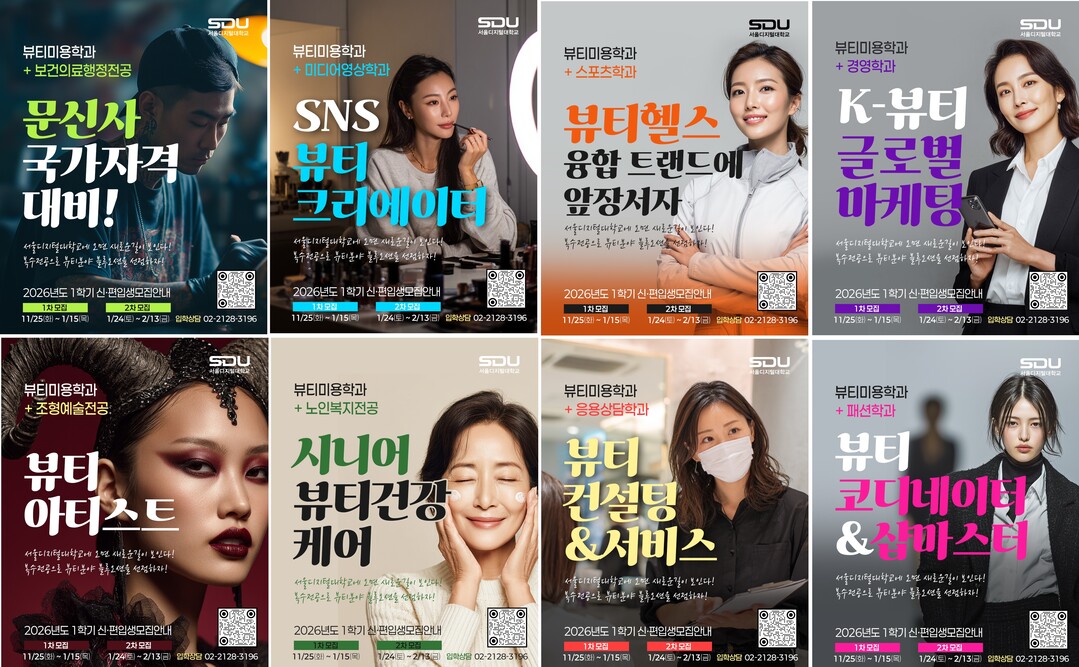서울디지털대 뷰티미용학과는 국내 유일의 토탈케어전문가를 양성하는 K-뷰티 선도학과로 졸업 시 최대 3개의 4년제 학사학위 취득이 가능하다. 2026학년도 1학기부터 뷰티미용학과는 최소 2개 이상의 전공을 이수하는 복수전공·부전공 제도를 확대하는 교육과정을 운영한다. 미래 뷰티미용 산업 분야의 창의 융합 인재를 양성하기 위해 뷰티미용학과는 8개 분야 복수전공시리즈로 △보건의료행정전공 △스포츠학과 △노인복지전공 △패션학과 △조형예술전공 △미디어영상학과 △응용상담학과 △경영학과와 융합전공이 가능하다. 이를 통해 반영구 전문인 역량 강화를 위한 문신사 국가자격 대비, 시니어뷰티건강케어, 뷰티 코디네이터 & 샵마스터, 뷰티아티스트, SNS 뷰티크리에이터, 뷰티 컨설팅 및 서비스, K-뷰티 글로벌 마케팅, 뷰티헬스 융합 교과과정과 더불어 변화하는 과학기술, 산업 환경에 부합하는 전공을 설계한다.