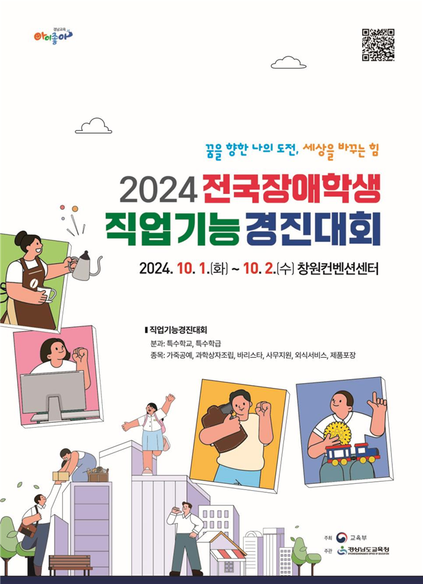 교육부와 경남교육청이 10월 1일부터 2일까지 창원컨벤션센터와 창원문성대학교에서 ‘2024 전국 장애학생 직업기능경진대회’를 개최한다고 밝혔다.