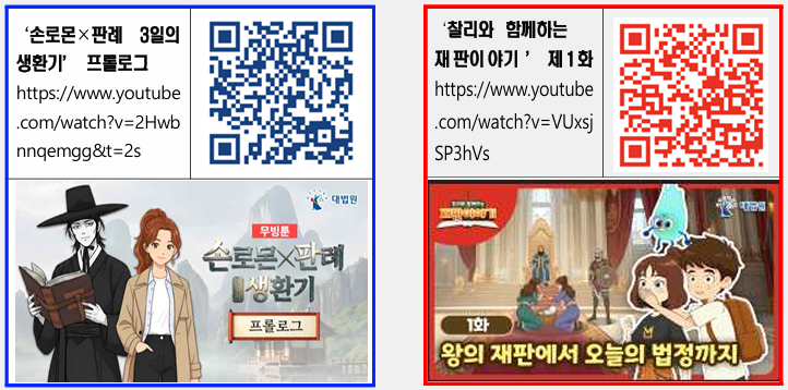 법원은 그동안 ‘바로미와 함께하는 좌충우돌 재판이야기’와 ‘청소년이 꼭 알아두어야 할 법원과 재판이야기’ 등 교재를 발간해 청소년 대상 법교육을 이어왔는데, 이번에는 영상과 웹툰 형식으로 콘텐츠를 확장해 이해도를 높인다는 계획이다.
