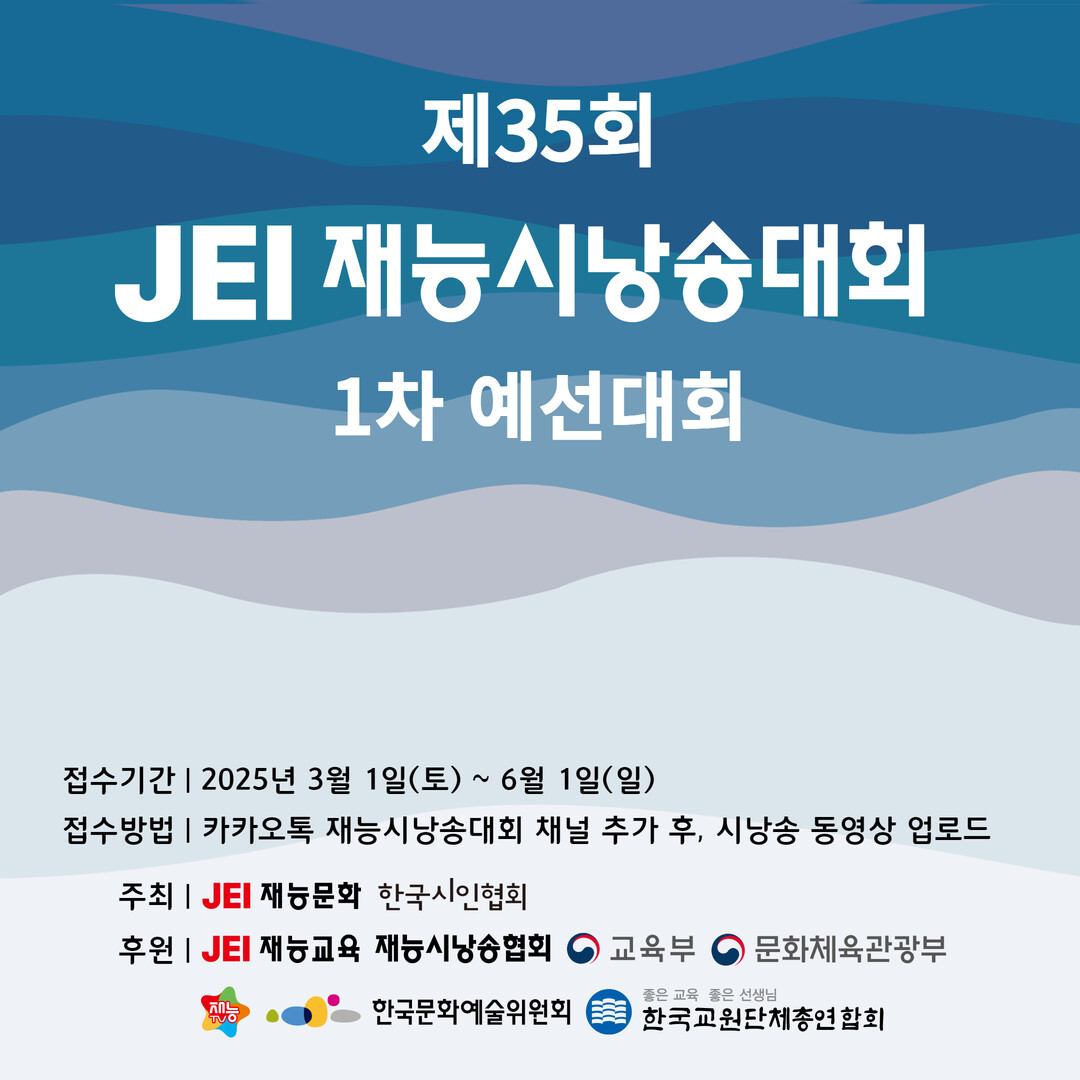 [피앤피뉴스=마성배 기자] 전국을 시의 감성으로 물들이고, 전 세대가 시낭송의 즐거움을 경험할 수 있는 ‘제35회 재능시낭송대회’가 열린다. 올해 대회는 초등부, 중·고등부, 성인부로 나뉘어 진행되며, 6월 1일까지 온라인 예선 참가 접수가 가능하다.