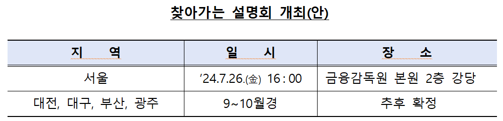 오는 26일 서울 금융감독원에서 첫 설명회...지방 9월~10월 진행 예정