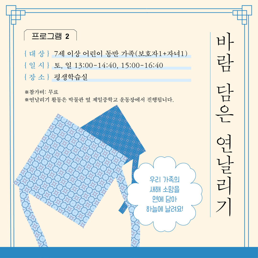 이번 프로그램은 새해 복을 기원하는 체험 활동과 전통놀이를 통해 가족 간 화합과 소통의 시간을 제공할 목적으로 기획되었다.