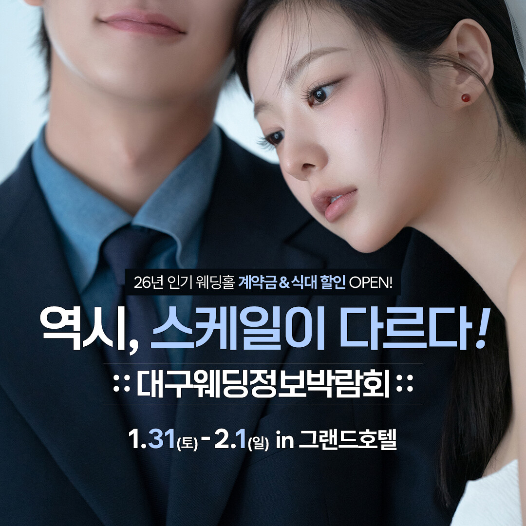 새해 초, 결혼 준비를 시작하는 예비부부를 위한 대구웨딩정보박람회가 2026년 1월 31일~2월 1일 이틀간 대구 그랜드호텔 지하 1층에서 진행된다. 여러 곳을 따로 방문하지 않아도 웨딩 준비 핵심 항목을 한 번에 비교할 수 있도록 구성됐다.
