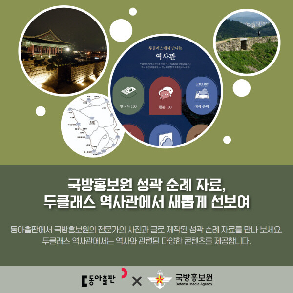 동아출판 관계자는 “두클래스 역사관을 통해 호국의 역사를 간직한 성곽 순례 자료를 선보일 수 있게 돼 뜻깊다. 앞으로도 소중한 문화유산을 널릴 알리고 익힐 수 있는 양질의 콘텐츠를 제공하도록 노력하겠다.”라고 전했다.