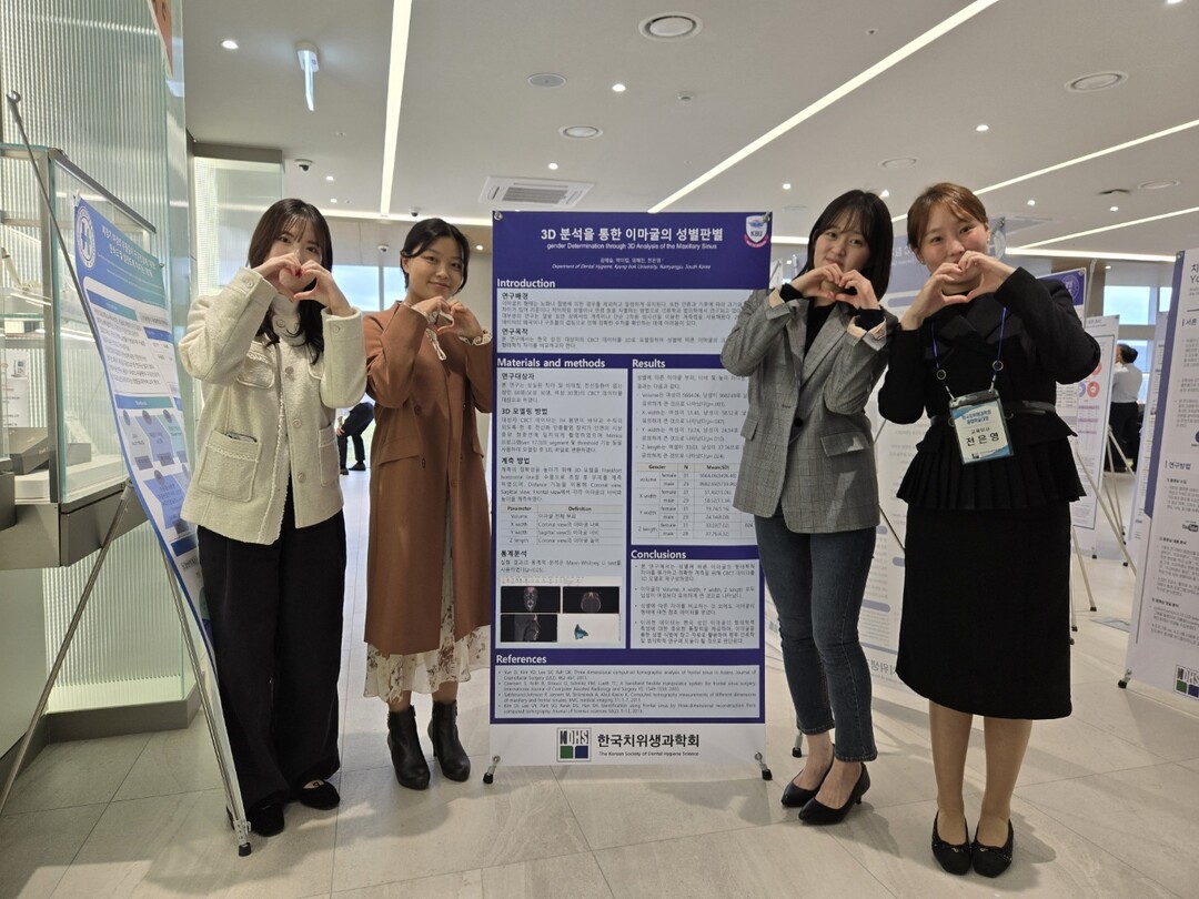 이번 종합학술대회는 ‘신의료기술의 임상적 적용’을 주제로 진행됐으며, 김예슬(치위생학과 전공심화과정)학생 팀은 ‘Gender Determination through 3D Analysis of the Maxillary Sinus (3D 분석을 통한 이마굴의 성별판별)’를 발표해 동상을 수상했다.