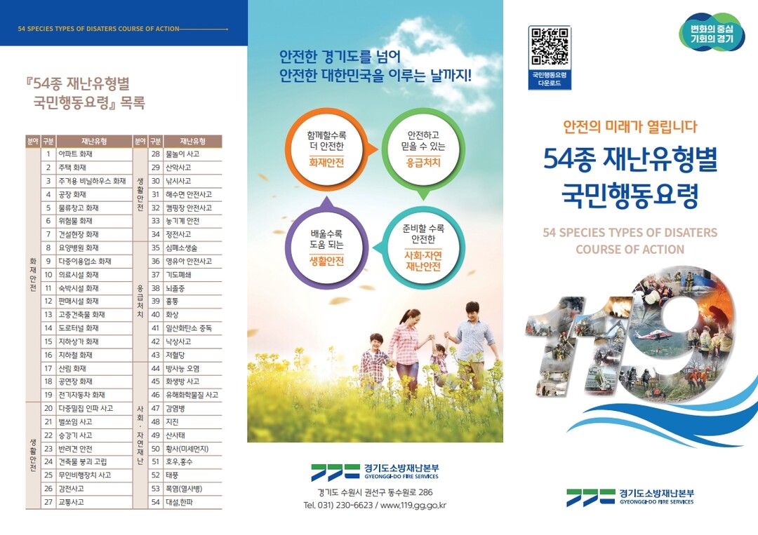 경기소방이 지난해 전국 최초로 제작한 ‘재난유형별 국민 행동 요령’은 아파트 화재, 드론 사고, 캠핑장 사고 등 54가지 유형의 재난 상황별 대처법을 안내하고 있다.